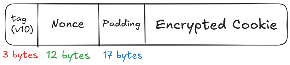 Once the key is recovered, we can get the nonce of the encrypted cookie, allowing it to be decrypted.
