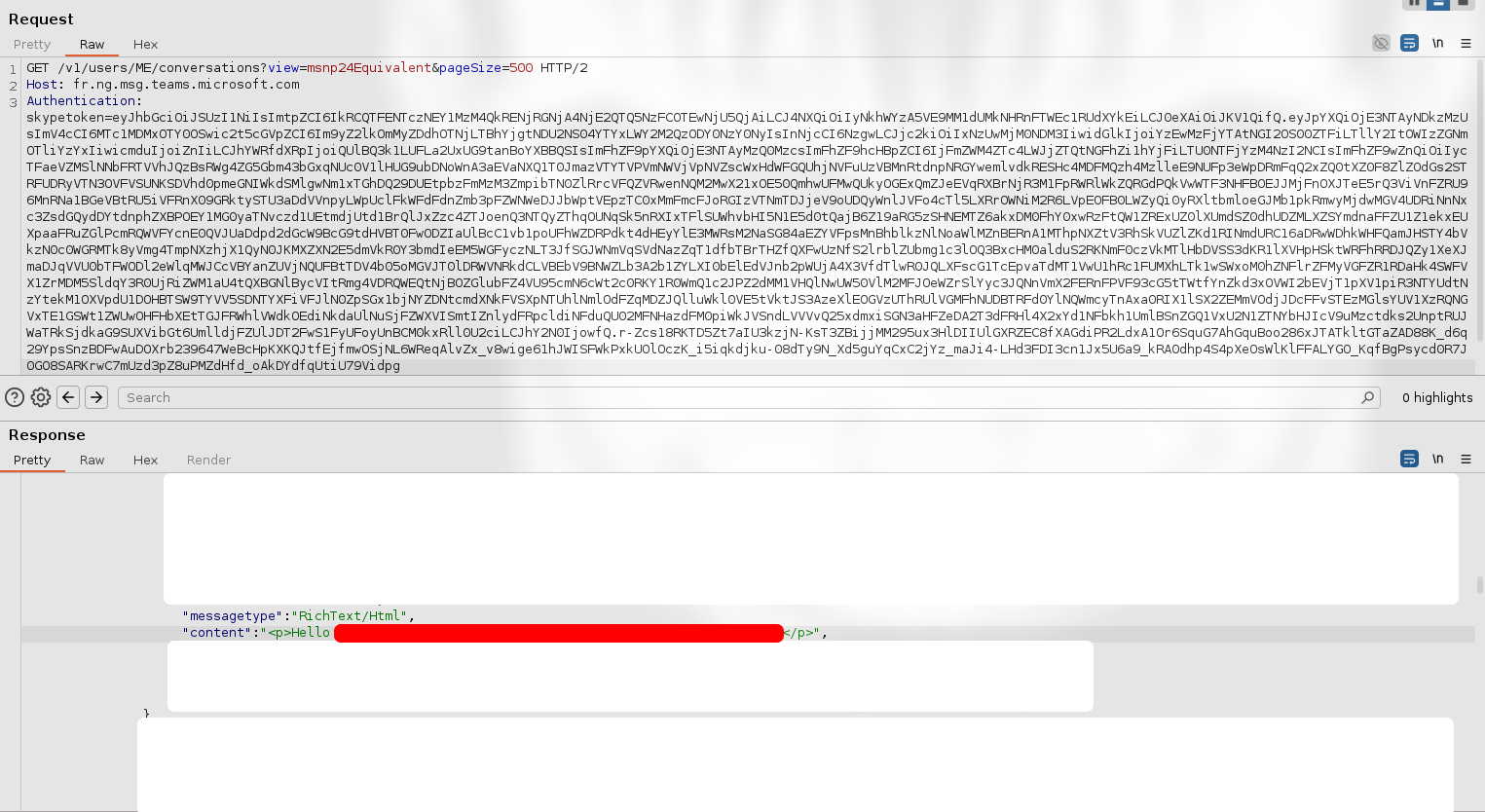 After retrieving the chatService and skypeToken tokens, we can, for example, fetch the messages sent by the account.
