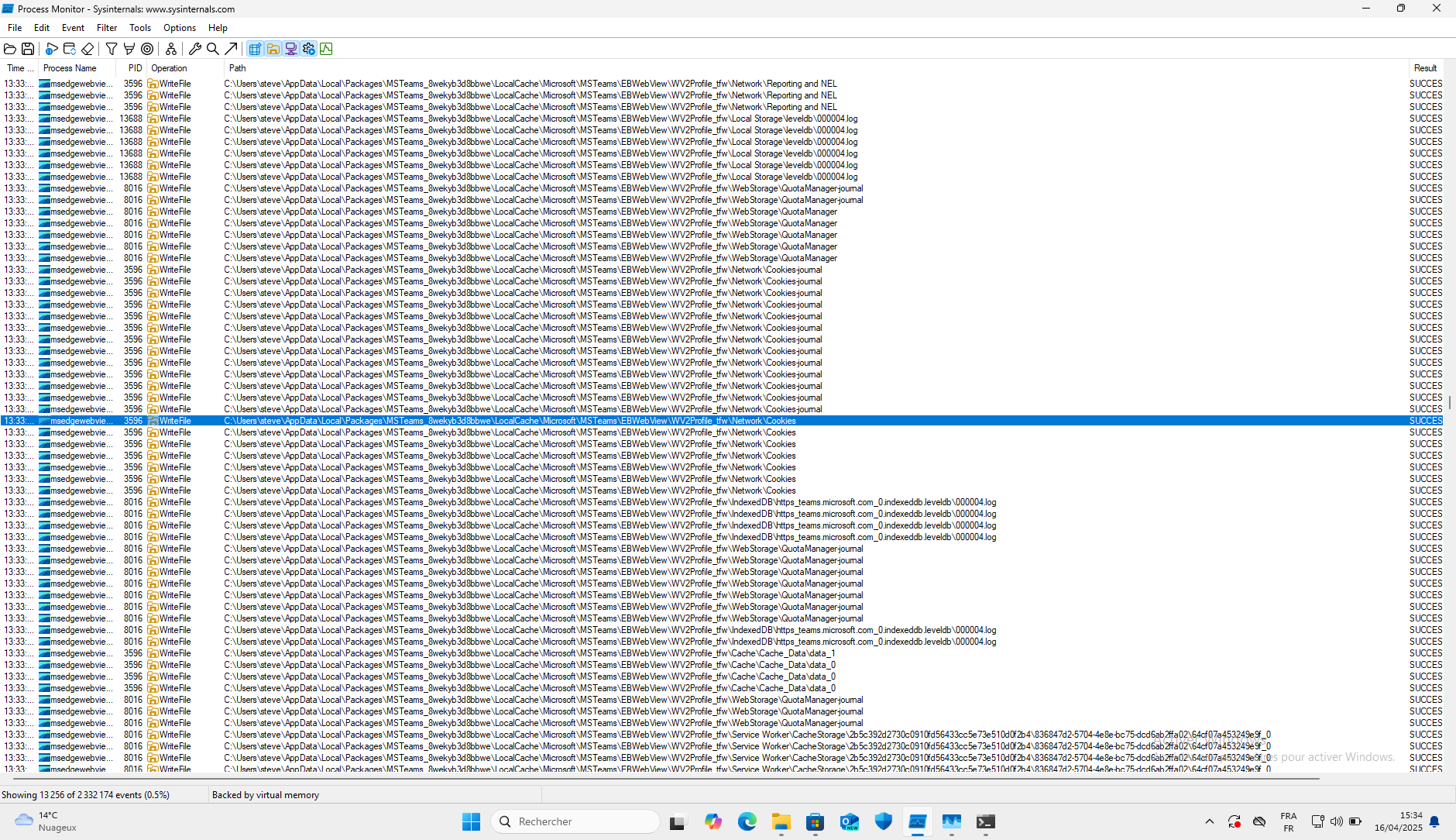 process with ProcMon, we noticed that aside from log files, no interesting files are written during authentication. However, when analyzing the msedgewebview2.exe